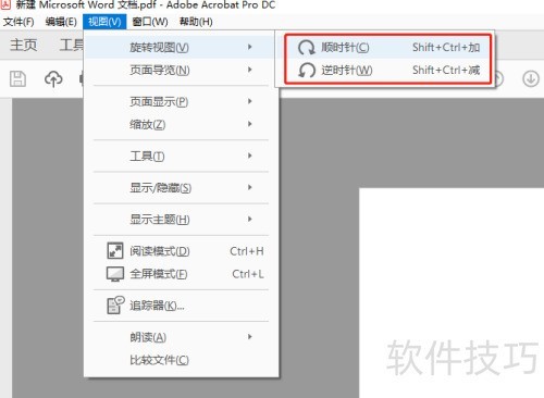 2、 在菜单栏中选择视图→旋转视图,点击顺时针或逆时针选项,页面随即旋转,效果所示。