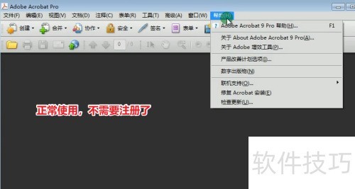 Adobe Acrobat 9 Pro 是一款功能强大的PDF文档编辑工具,支持创建、编辑并保存文件为便携式文档格式,方便查看与打印。用户还可使用其进阶功能提升工作效率。如需激活软件,请按照提供的步骤输入有效序列号完成注册,从而解锁全部功能,获得完整使用体验。
