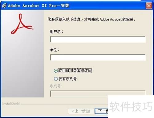1、 将AcrobatPro_11_Web_WWMUI.exe解压至指定文件夹,进入该目录运行setup.exe进行安装,安装过程中选择试用或订阅选项即可完成配置。