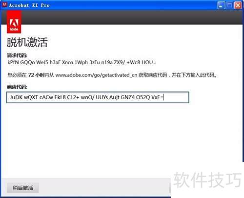 15、 点击生成按钮获取响应代码,将其复制并粘贴至脱机激活窗口的指定区域即可完成操作。