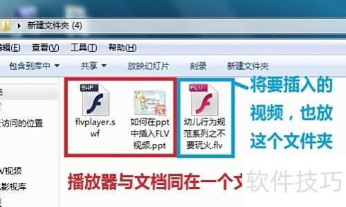 1、 在PPT中播放FLV视频,需下载flvplayer.swf播放器文件,并将其与PPT文档置于同一文件夹,方可正常播放。所示。
