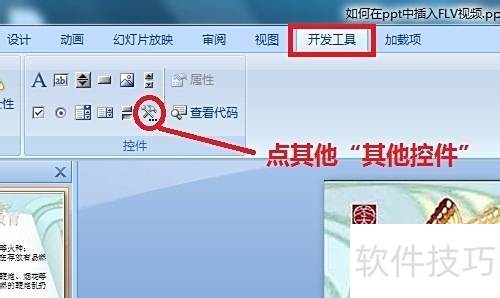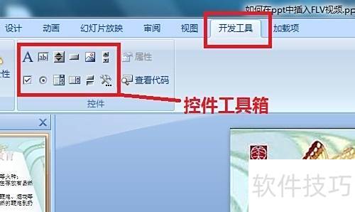 2、 今天以PowerPoint 2007为例,介绍如何将FLV格式视频插入幻灯片。在早期的2003版本中,功能区可以直接看到控件工具箱,但在2007版中该选项被默认隐藏,因此第一步是将其调出。具体操作需要先自定义功能区,找到开发工具相关设置,启用控件工具箱功能。这一过程已有详细图文教程可供参考,链接为:http://jingyan.baidu.com/article/d713063507112313fdf47589.html,此处不再重复说明。调出工具箱后,即可通过其中的ActiveX控件插入FLV视频文件,实现播放功能。整个流程操作清晰,适合在教学或演示中使用,增强课件的互动性和表现力。掌握这一技巧,能更灵活地整合多媒体资源,提升PPT的专业水准。