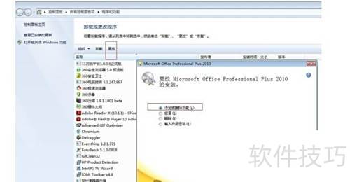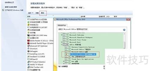 2、 在程序和功能中选中Office,点击更改按钮进行操作。