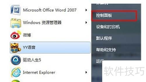 1、 点击开始菜单,选择控制面板选项。