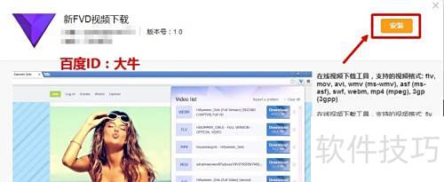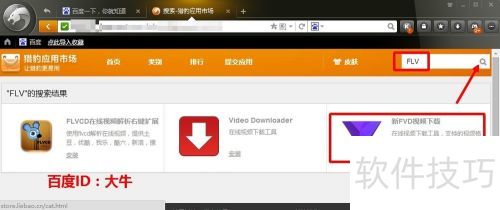 6、 在应用市场搜索FLV,找到新FVD视频下载并点击安装即可。