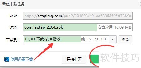 3、 创建下载任务前,需先设定安卓游戏的存储文件夹,并牢记其具体位置。