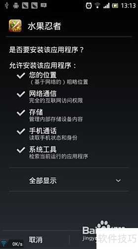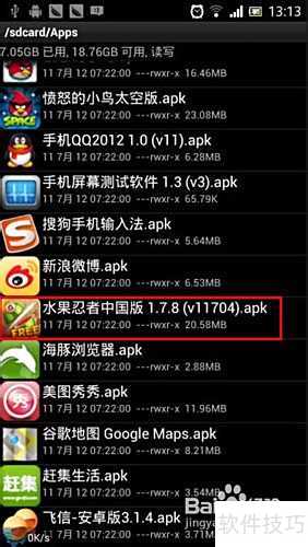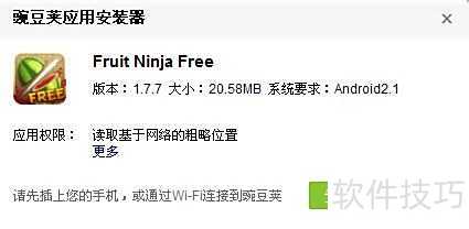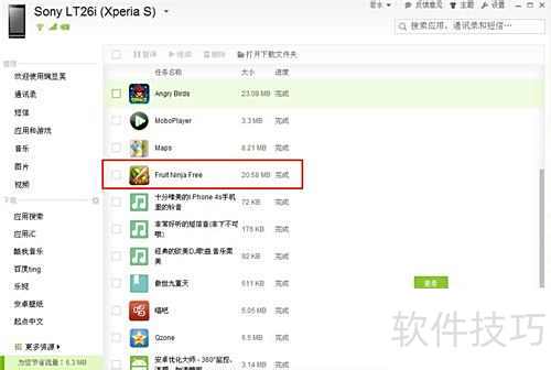 4、 找到已下载的游戏(如水果忍者),点击安装按钮完成操作。