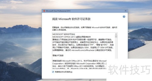 8、 安装激活工具时,屏幕会出现蓝色窗口,属正常现象。安装完成后,Visio将自动激活,无需额外操作。此时重新打开Visio,点击接受许可协议,即可正常使用全部功能。整个过程简便快捷,无需手动干预。