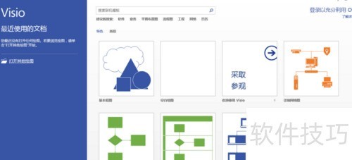 6、 启动Visio时会提示登录Hotmail账户,可选择跳过。随后选择使用推荐设置,系统将播放Office系列产品介绍视频,可直接略过。进入主界面后新建一个空白绘图,此时会发现软件尚未激活,功能受限无法正常使用。