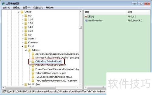 4、 重新进入HKEY_CURRENT_USERSoftwareMicrosoftOffice路径,参照步骤3操作,将其中Excel项下的OfficeTab.TabsforExcel删除即可。整个过程需谨慎操作,确保路径准确,避免误删其他重要数据,完成后重启软件生效。