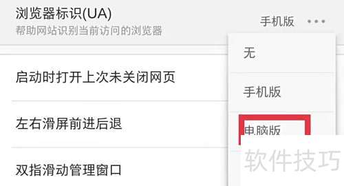 在UC浏览器中,依次点击我的、设置、网页浏览设置、浏览器标识,最后选择电脑版即可完成设置。