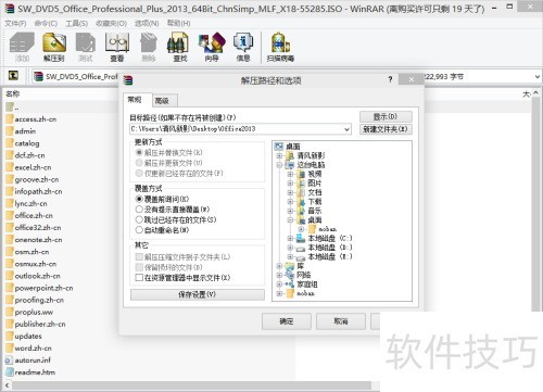 2、 将SW_DVD5_Office_Professional_Plus_2013_64Bit_ChnSimp_MLF_X18-55285.iso文件使用WinRAR解压缩,目标位置为桌面新建的Office2013文件夹中,确保文件完整释放,便于后续安装或查看内容。