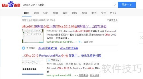 1、 在百度搜索office 2013 64位,会出现大量相关下载链接,所示。