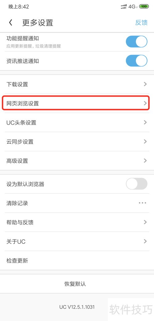 2、 在UC浏览器底部点击菜单图标进入设置。