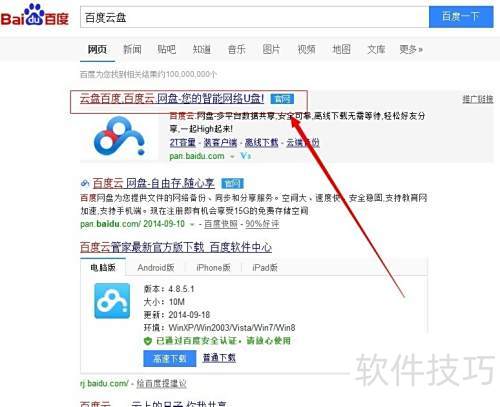 1、 访问百度首页,搜索栏输入百度云盘,点击官网链接进入。