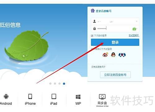 2、 访问百度云盘登录页,输入账号密码后点击登录即可使用。若无百度账号,需先注册才能登录云盘服务。