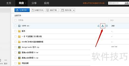 7、 当需要使用时间文件时,只需按前述方法打开百度云盘,找到目标文件,点击下载按钮,即可将文件保存到本地使用。