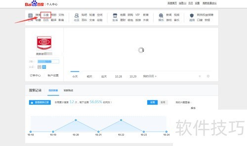 4、 进入个人中心页面,点击顶部选项。