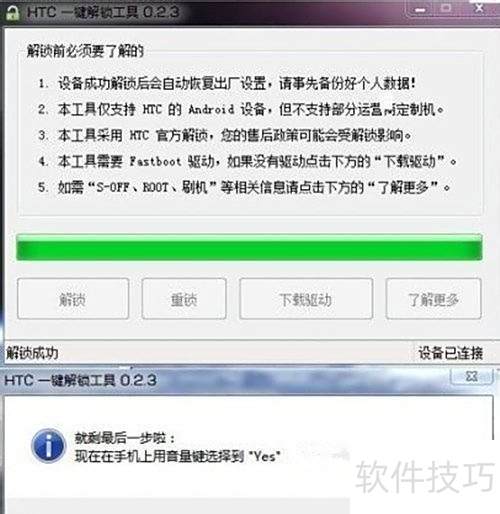 3、 数据线需保持连接,解锁完成后按提示继续操作。