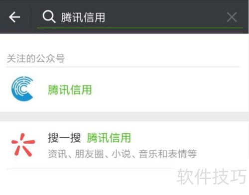 1、 先打开微信搜索腾讯信用,找到后点击关注公众号即可。
