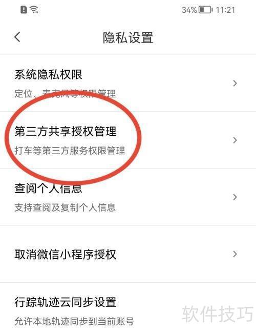 3、 进入页面后,请点击第三方共享授权管理按钮。