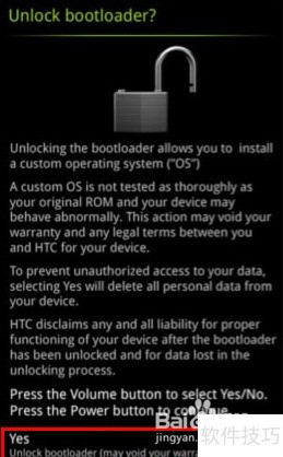 15、 通过音量加减键选择YES,再按电源键确认。若部分机型无反应,可尝试选NO后重启手机,此时即可完成解锁操作。
