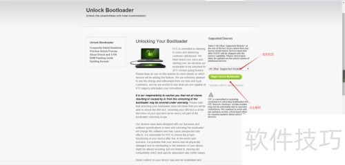 5、 访问官网解锁地址:www.htcdev.com/bootloader/,按指引操作即可完成解锁。