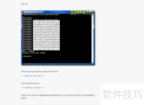 10、 下图所示操作使用的命令为:fastboot oem get_identifier_token,用于获取设备识别令牌信息。