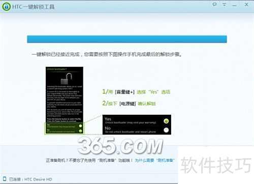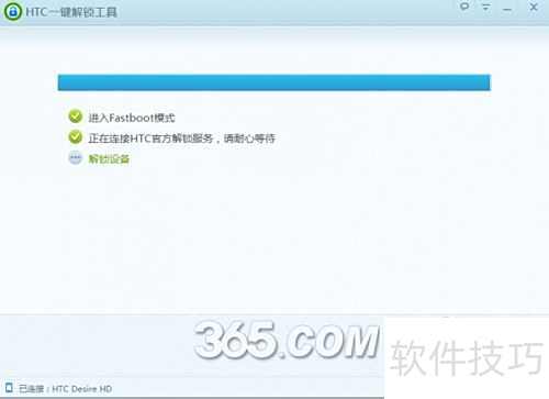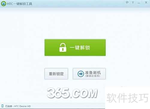 4、 第三步:至此,解锁操作即告完成。通过同一软件,还能为HTC T328W重新上锁。整个过程手机将自动进入三色屏并重启,请耐心等待,切勿断电或拔掉数据线,以免影响操作。