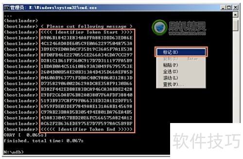 9、 输入命令 fastboot oem get_identifier_token 后按下回车键,系统将返回标识符令牌信息。