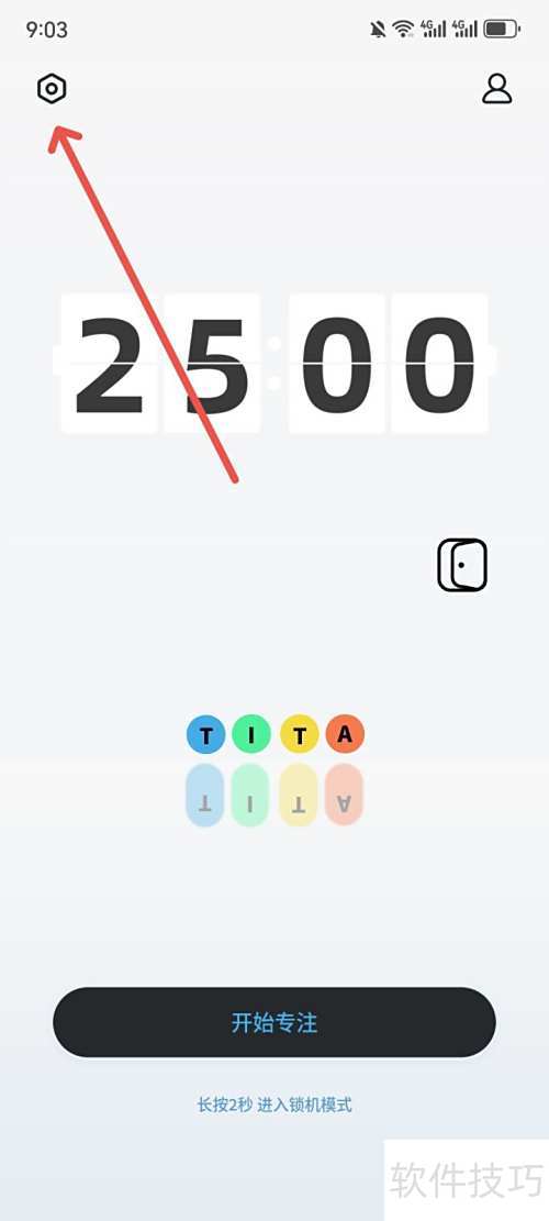 1、 打开TITA专注软件,点击左上角的设置按钮。