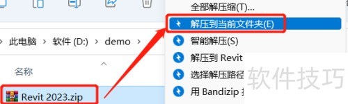 1、 右键解压文件至Revit 2023 64位文件夹。