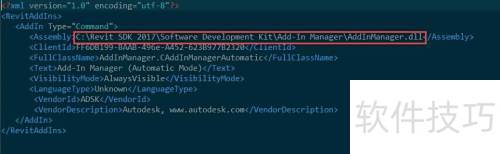 8、 若第一步中的工具和实用程序已按默认路径(C:Revit SDK 2017)安装,则此步骤无需调整;若为自定义安装路径,需用文本编辑器打开两个配置文件,仅将其中AddInManager.dll的路径修改为实际安装位置,其余内容保持不变,修改后保存即可。
