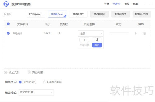 2、 将待转换的PDF文件导入工具中。若文件体积过大或页数过多,可点击页码选择功能,指定...