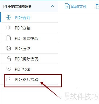 3、 在左侧菜单中选择PDF图片提取功能。