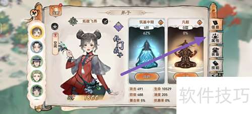 2、 进入弟子界面,点击拓跋飞燕图标即可。
