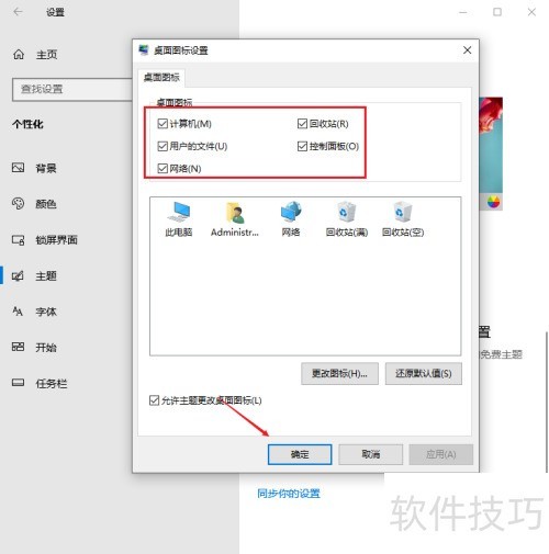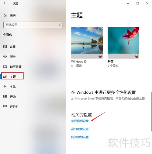 2、 进入设置页面的项目栏,选择主题,然后在右侧点击桌面图标设置。