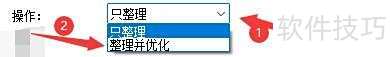 4、 在弹出的窗口中,先点击操作按钮,再选择整理并优化选项。