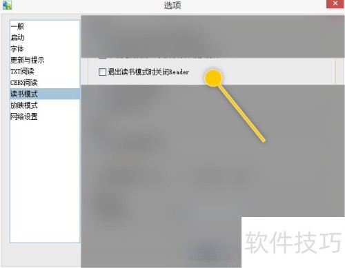 2、 在选项界面中,开启退出读书模式时自动关闭Reader的功能。