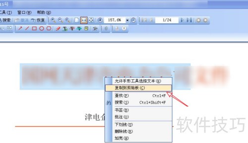 4、 点击文字选择工具,选中需复制的文本内容。