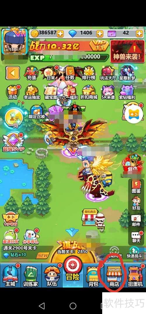 1、 登录游戏后,点击右下角商城进入。
