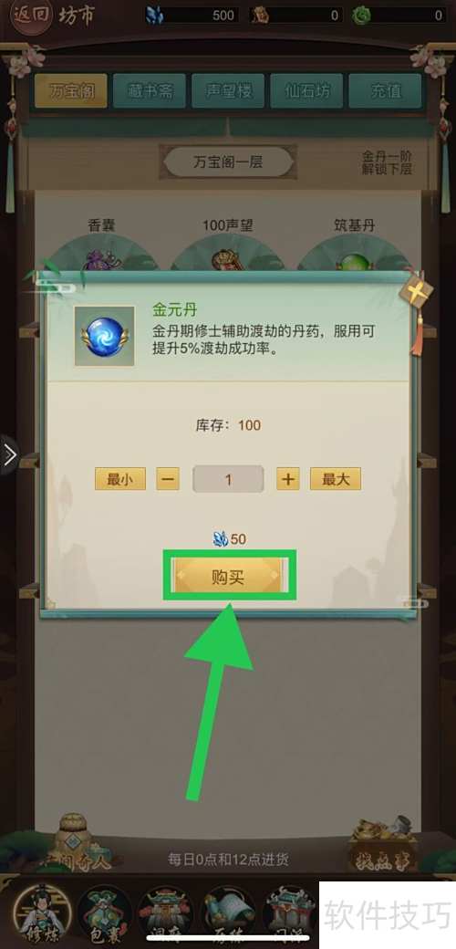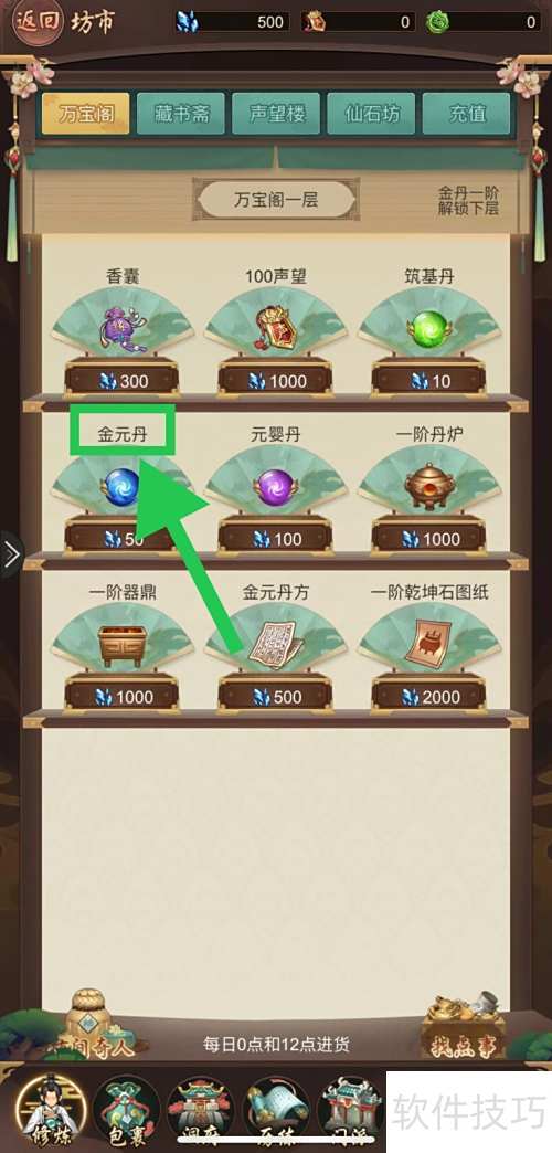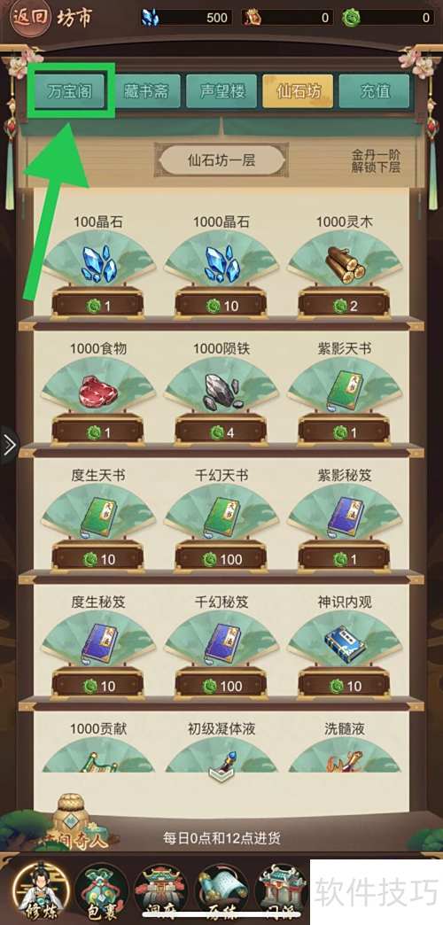 1、 打开逍遥修真,点击首页的万宝阁入口。