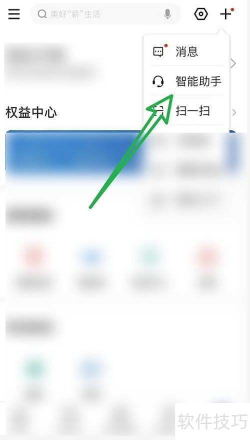 2、 进入我的页面,点击右上角加号,选择智能助手即可。