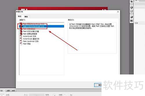 2、 由于FLash8仅支持AS2脚本,需选择新建一个ActionScript 2.0文档。