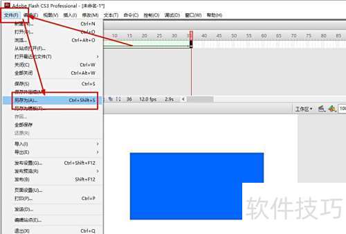 4、 通过文件菜单选择另存为,或按Ctrl+Shift+S快捷键保存。