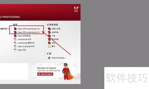 1、 启动Flash CS3,创建新文档。