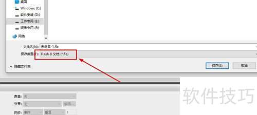 5、 在保存类型里选择Flash 8选项。
