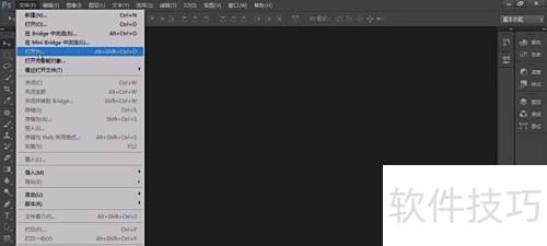 2、 第二步:可通过菜单栏选择打开,或使用Ctrl+O快捷键,所示。