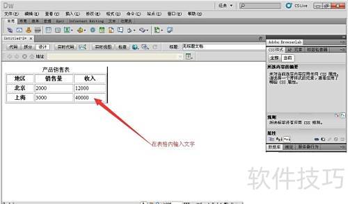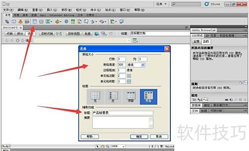 1、 启动Adobe Dreamweaver CS5,选择插入表格功能。