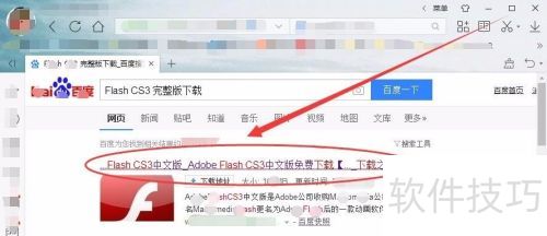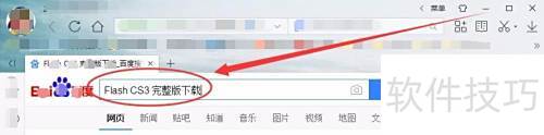 2、 在搜索框中输入FlashCS3完整版下载,然后点击百度一下按钮。